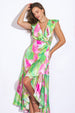 This LA BABE WOVEN SATIN MAXI DRESS is crafted from a luxurious woven satin fabric. It features a flattering surplice neckline with delicate ruffles and a hi-lo faux wrap skirt with a ruffled hemline. The dress fastens with a side zipper closure for a perfect fit.