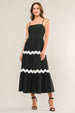 Achieve the perfect summer look with our charming midi sundress. Featuring a solid woven design, straight neckline, and straps for comfort, our dress is perfect for any occasion. With a tiered skirt adorned with delicate lace and a back zipper closure, you'll look effortlessly stylish. Make a statement at your next event or simply enjoy a day out in the sun while feeling comfortable and chic.