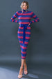 Embrace the cozy charm of the season with this striking sweater midi dress. Crafted from soft sweater knit fabric, it features a sophisticated turtle neckline and an adjustable self belt that cinches the waist for a flattering silhouette. The vibrant blue and fuchsia stripes add a playful pop of color, making it perfect for day-to-night wear. Tailored for timeless style and ultimate comfort, this dress is your go-to for sweater weather and beyond.